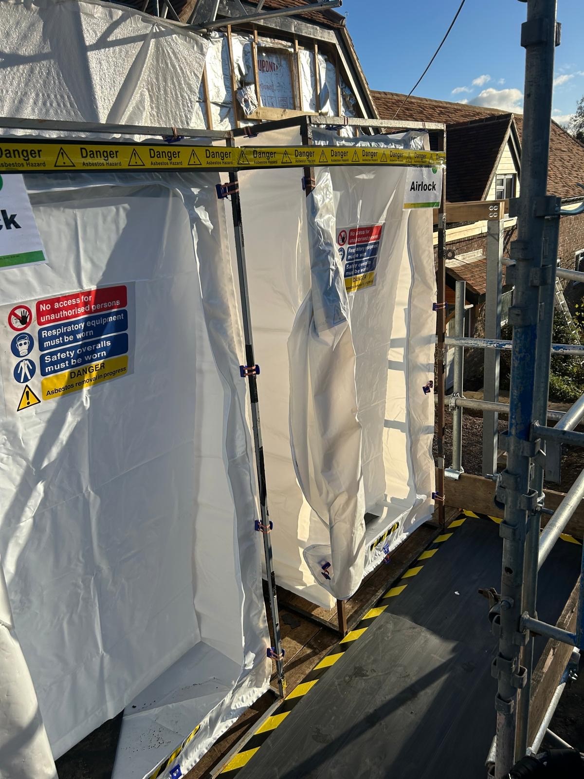 The asbestos insulating board was located within Roof B, positioned above the kitchen, bedroom, and bathroom areas. Due to the material type and location, the works required fully controlled conditions in accordance with the Control of Asbestos Regulations.